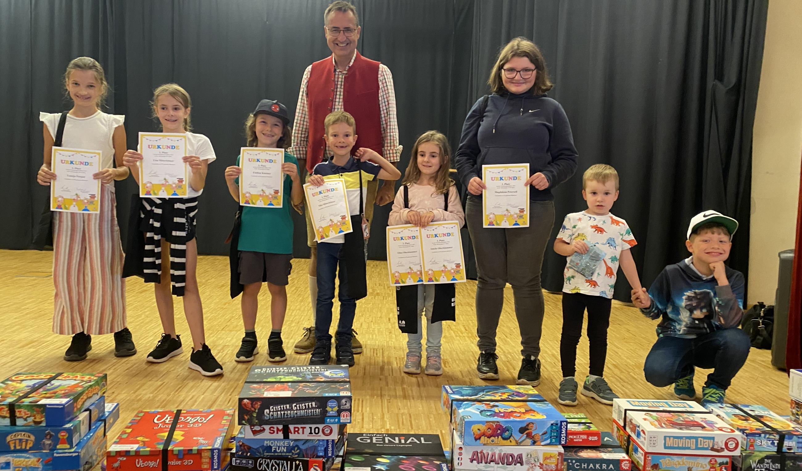 Neben dem Spielvergnügen standen auch feierliche Ehrungen im Mittelpunkt: Bürgermeister Max Oberleitner würdigte die langjährigen Arbeitskreisleiterinnen der Gesunden Gemeinde für ihr großes Engagement und zeichnete die Lesestars 2025 aus. 74 Kinder der Bibliothek Schwertberg hatten in den Sommerferien sage und schreibe 2.737 Bücher gelesen, eine außergewöhnliche Leistung, die an diesem Nachmittag gebührend belohnt wurde.
