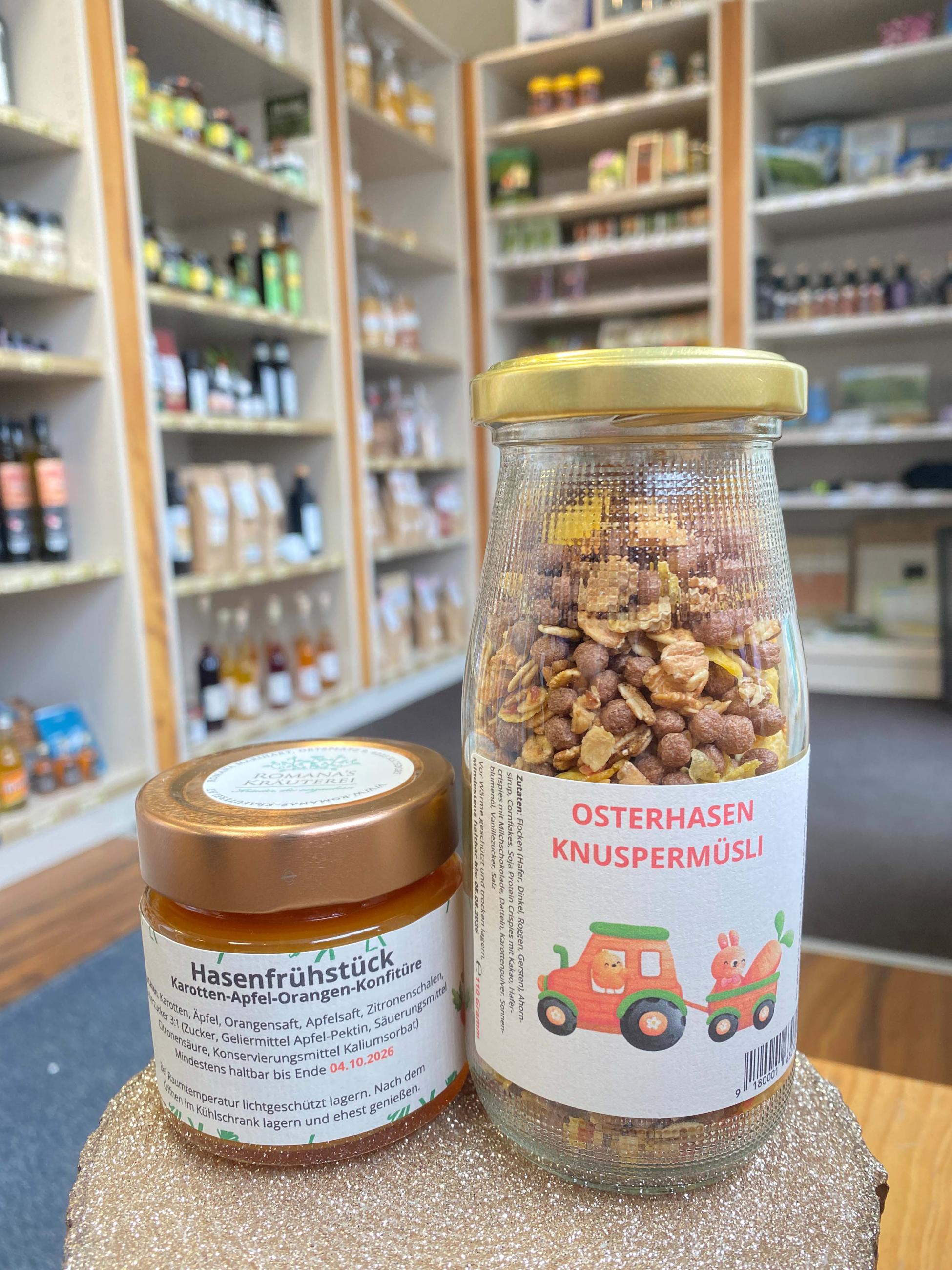 Freut euch auf feinen Eierlikör vom Biobauernhof Huber, aus Manis Schmankerlwerkstatt und aus der Likörerei Mühlberger und auf das neu eingetroffene "Osterhasen-Frühstück" aus Romans Kräuterei bestehend aus einem „Osterhasen-Knuspermüsli“ und einer fruchtige „Hasenkonfitüre“ – perfekt für einen genussvollen Start in die Feiertage.