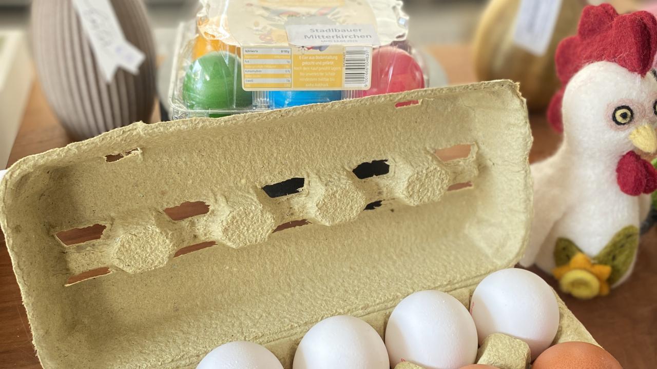 Ab sofort gibt es wieder Freilandeier von Familie Stadlbauer aus Mitterkirchen im Regionalshop Schwertberg. Für die Osterzeit haben sie uns heute auch gefärbte Eier vorbeigebracht!