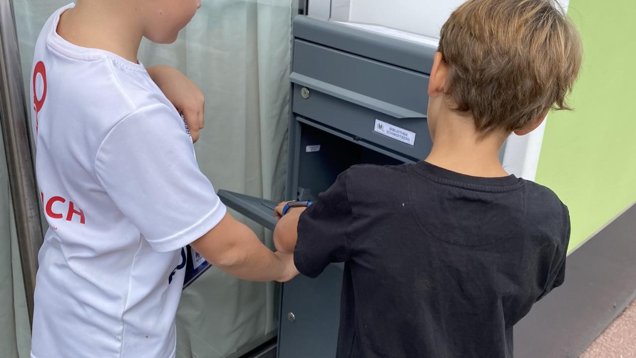 Die Rückgabebox wird an den Tagen, an denen die Bücherei geöffnet ist entleert.